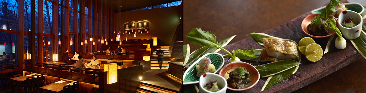 제철 식재료를 만끽할 수 있는 호시노야 카루이자와의 메인 다이닝. 신슈 지역과 관계가 깊은 식재료를 사용하여, 다양한 요리를 만들어내는 “카루이자와의 일본요리” 모두 오가닉 식재료를 사용하여 신선하며 건강에 좋은 요리를 준비 합니다. 전통에 새로운 감각이 더해진 호시노야 만의 카이세키 요리를 만끽 할 수 있습니다.