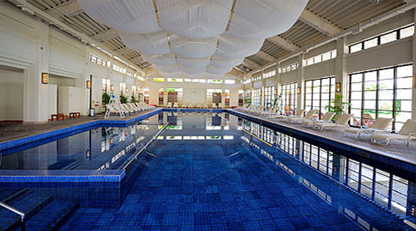폭포가 흐르는 실외 수영장, 날씨에 구애 받지 않고 즐길 수 있는 실내 수영장을 갖추고 있습니다.