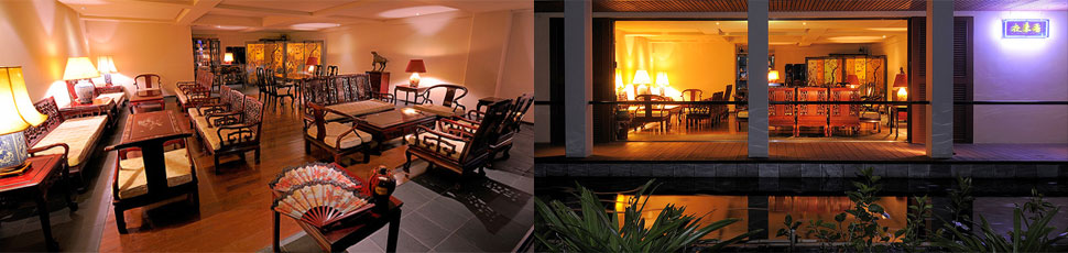 - 전통적인 중국 스타일의 가구를 배치한 공간에서 향기로운 중국의 술을 음미 할 수 있는 이국 정서가 넘치는 차이니즈 바(bar)입니다.