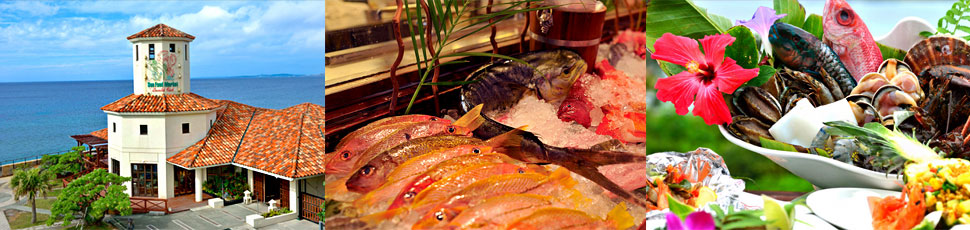 오키나와의 제철 식재료를 이용한 콘티넨탈 요리를 제공하며, 해변의 아름다운 경치와 파도 소리를 들으며