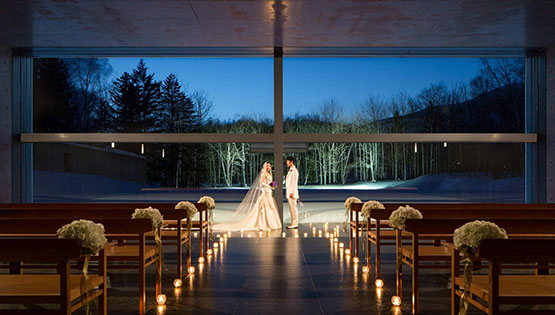 홋카이도의 웅대한 자연에 둘러싸인 “물의 교회”는 자연의 신성함을 소중히 여기는 일본의 대표적인 건축가 “안도 타다오”의 작품으로 실제 예배를 위한 것이 아닌 결혼식을 위한 채플로써 물과 자연의 조화를 테마로 설계한 걸작으로 손꼽힙니다. 현재에도 전세계의 수 많은 예술가와 건축학도들이 안도 타다오의 작품인 ‘물의 교회’를 감상하기 위하여 토마무 리조트를 찾는 발길이 끊이지 않고 있습니다.